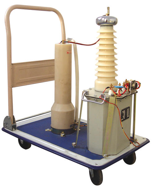 把電源輸入有過流自動脫扣及防止突發(fā)加壓的零位連鎖裝置的操作箱,經(jīng)自耦調(diào)壓器調(diào)節(jié)電壓輸入試驗變壓器初級繞組,根據(jù)電磁感應原理,在次級(高壓)繞組按其與初級繞組匝數(shù)之比可獲得同等倍數(shù)的電壓幅值-工頻高壓。此工頻高壓經(jīng)高壓硅堆整流及穩(wěn)壓電容器濾波可取得直流高壓,其幅值是工頻高壓有效值的2倍。
