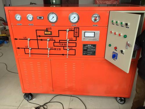 具有回收、充放、凈化、抽真空、貯存、灌瓶等綜合性功能,系統(tǒng)比較完全。各功能的串聯(lián)或切換主要通過(guò)操作集中于面板一側(cè)的電控箱和球閥來(lái)完成。