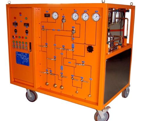 本裝置由SF6氣體回收裝置組成。涉及的產品的主要優(yōu)點為能直接將回收的SF6氣體以液態(tài)的形式貯存入容器,并能將GIS內的殘壓回收至53Kpa(絕壓),擁有較小的體積,便于移動的放置,擁有較快的抽真空速度,能對回收的SF6氣體進行干燥和過濾,還能回充SF6氣體至SF6電氣設備。